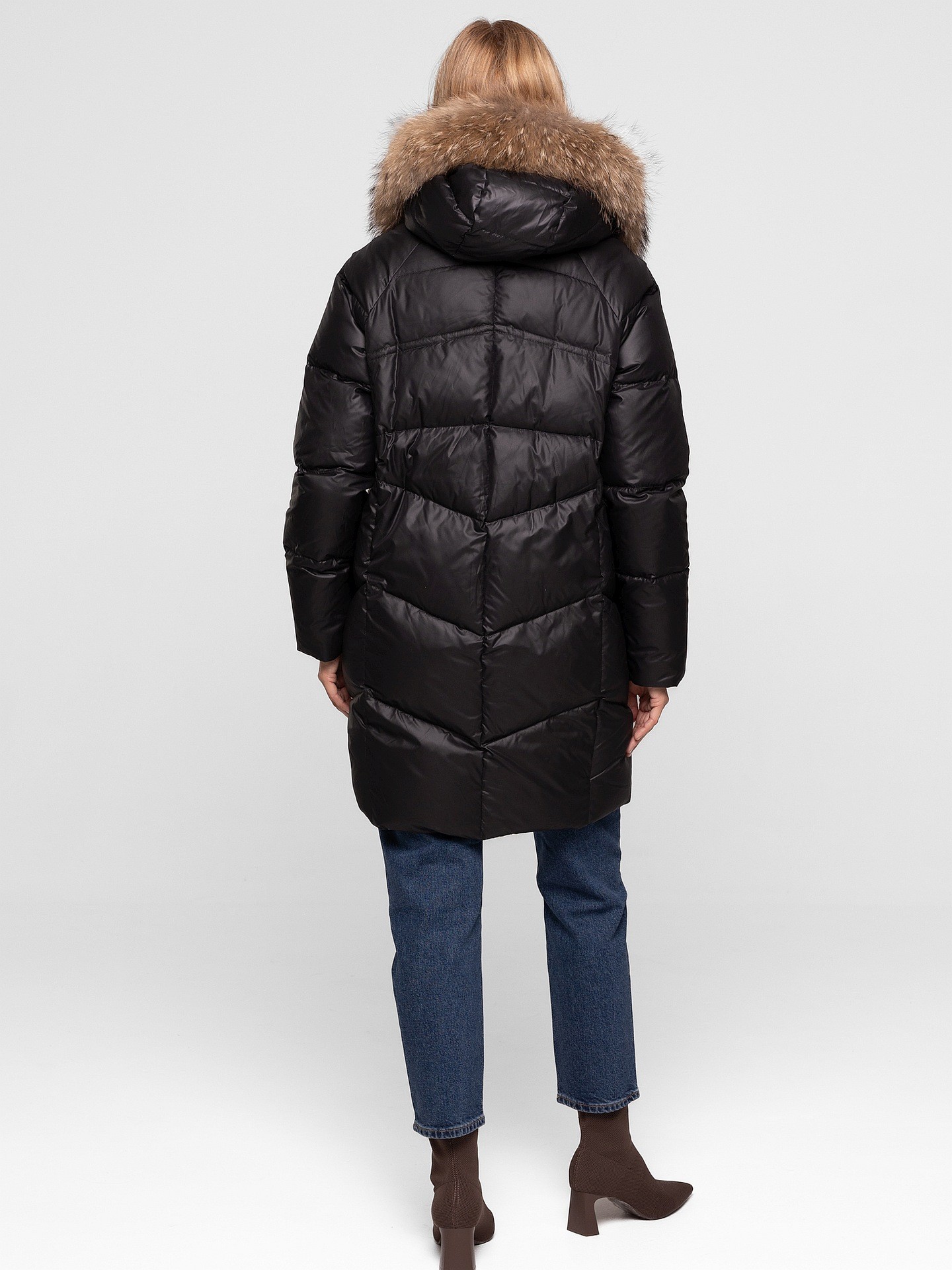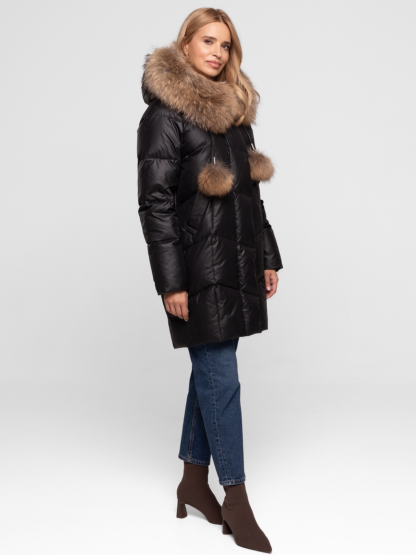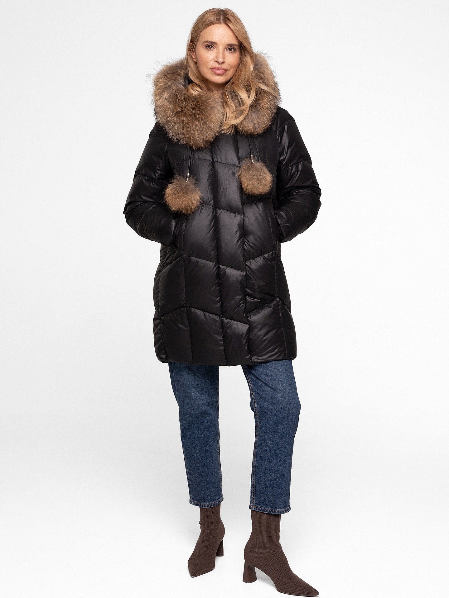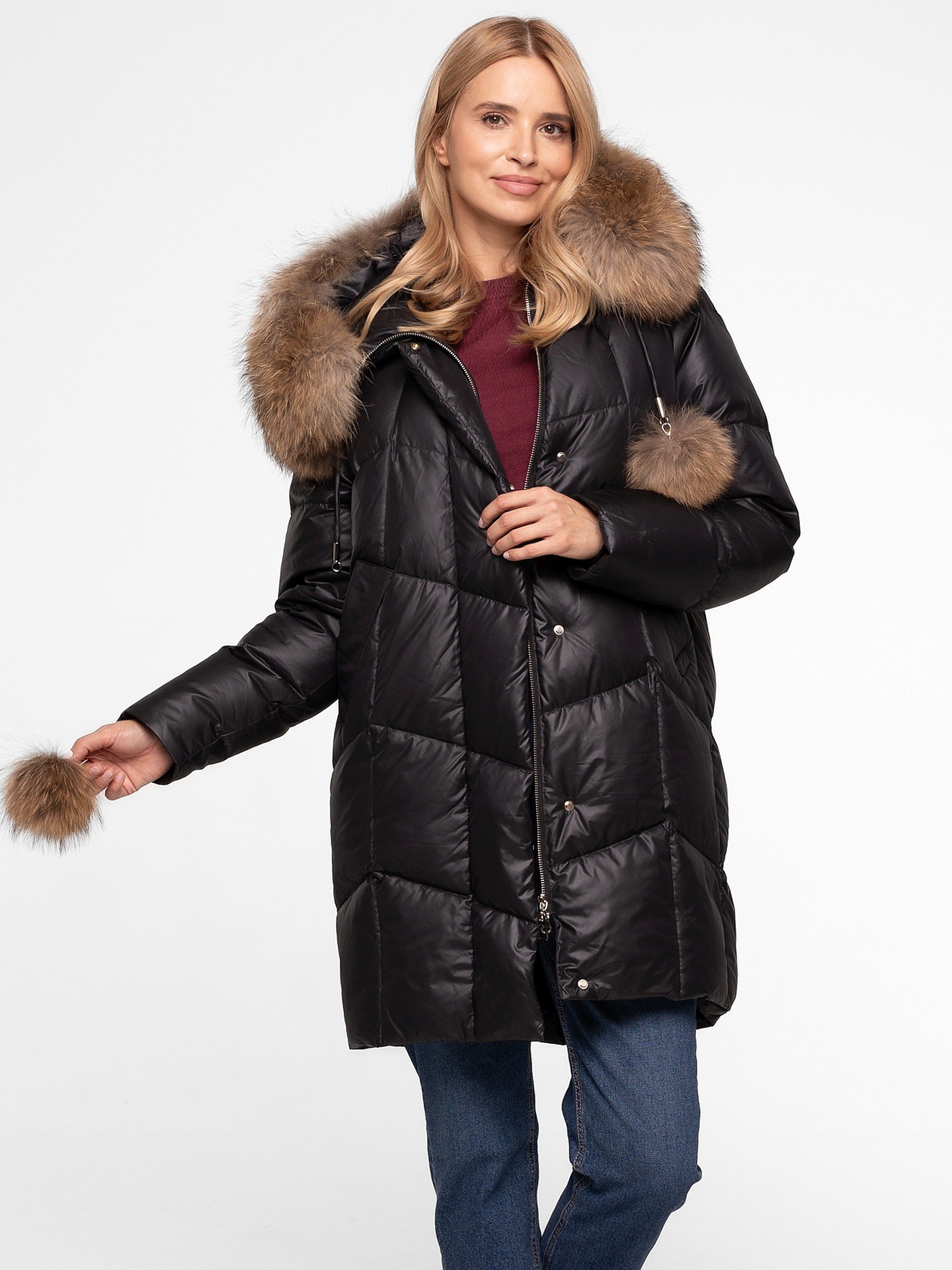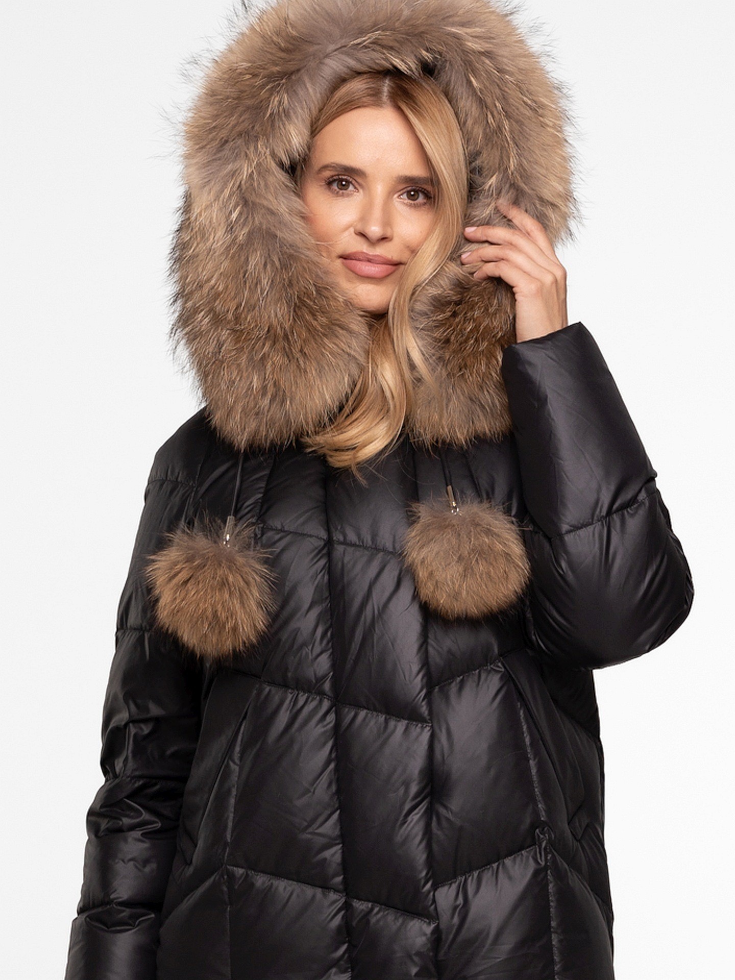 Stylowa, pikowana kurtka damska z naturalnym futrem jenota to idealna propozycja na chłodne, jesienno-zimowe dni. Utrzymana w modnym, twarzowym beżowym lub czarnym kolorze, łączy w sobie elegancję, funkcjonalność i komfort noszenia. Ozdobne pikowania, efektowne futro oraz odpinane, futrzane pompony przy kapturze dodają całości niepowtarzalnego, luksusowego charakteru.