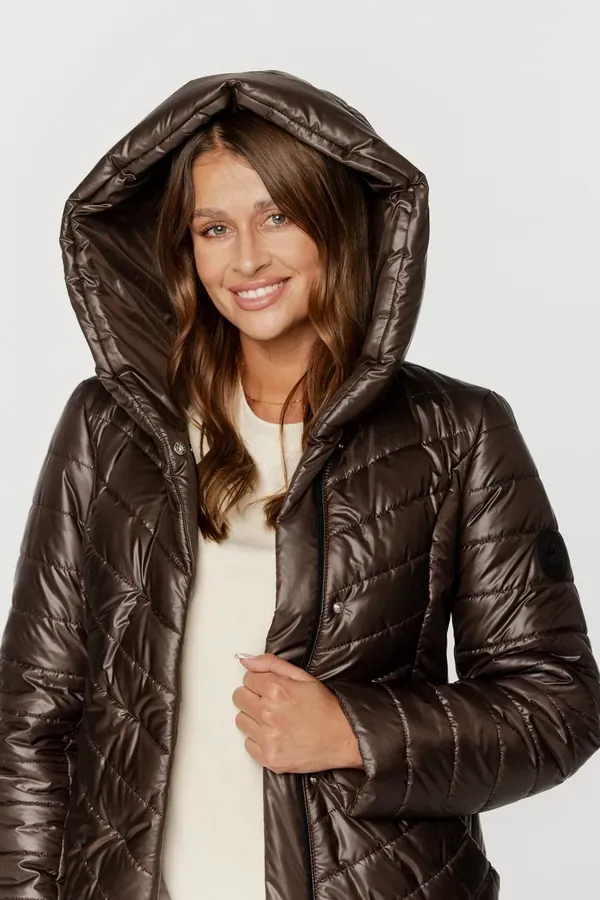 Pikowana, długa kurtka KAJA to idealny wybór na chłodne dni. Jej taliowany fason doskonale podkreśla sylwetkę, zapewniając jednocześnie komfort i ciepło. Model został wykonany z wysokiej jakości materiałów, posiada syntetyczne wypełnienie oraz podszewkę, co gwarantuje doskonałą izolację termiczną. Kurtka zapinana jest na zamek i zatrzaski w kolorze srebrnym, a kieszenie po bokach dodają jej funkcjonalności . Jest niezwykle lekka i wygodna.