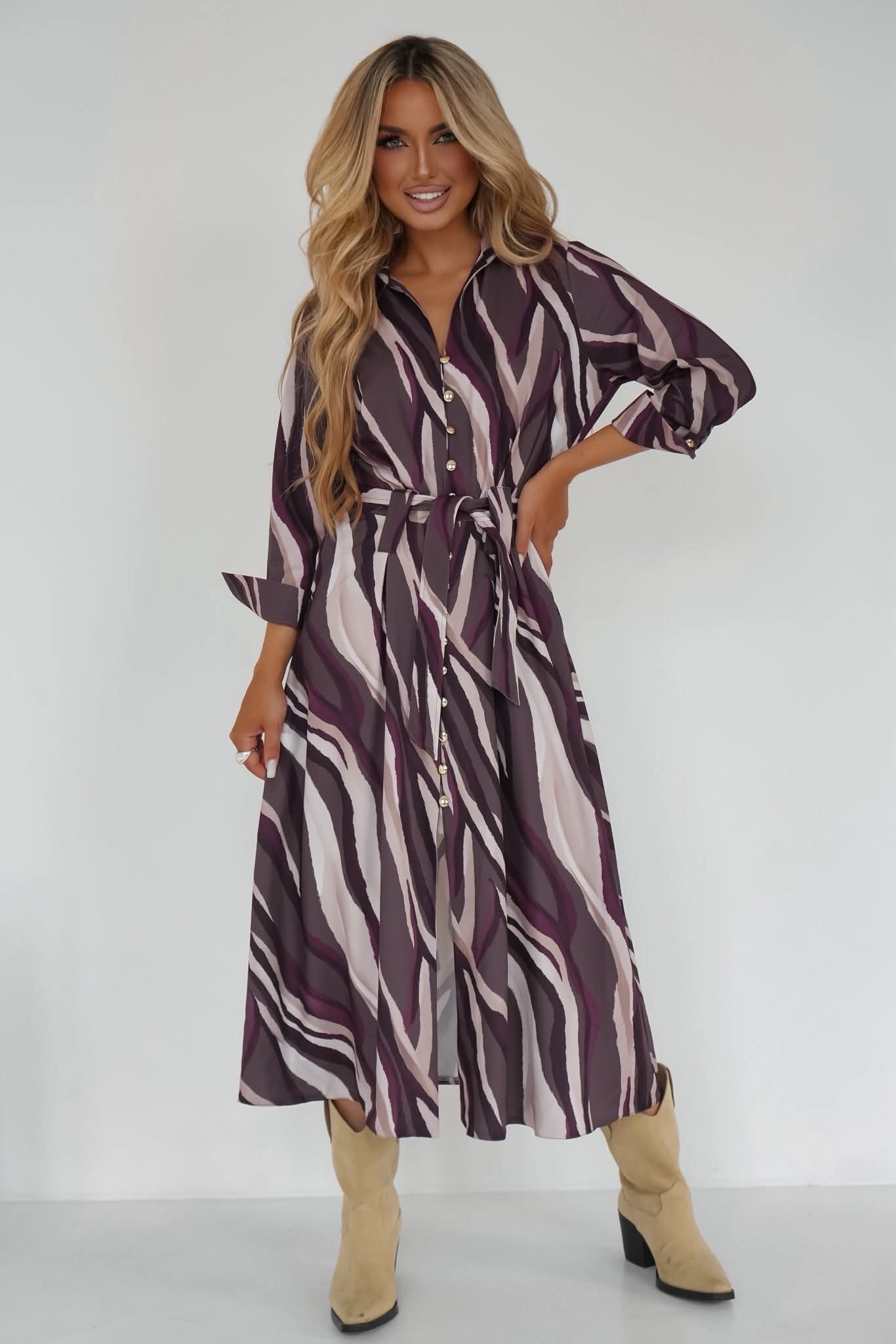 Koszulowa sukienka maxi w artystyczne mazaje to połączenie wygody, kobiecego stylu i wyrazistego wzornictwa. Wyróżnia się zapięciem na guziki na całej długości, co nadaje jej funkcjonalności i pozwala nosić ją również jako lekką narzutkę.
