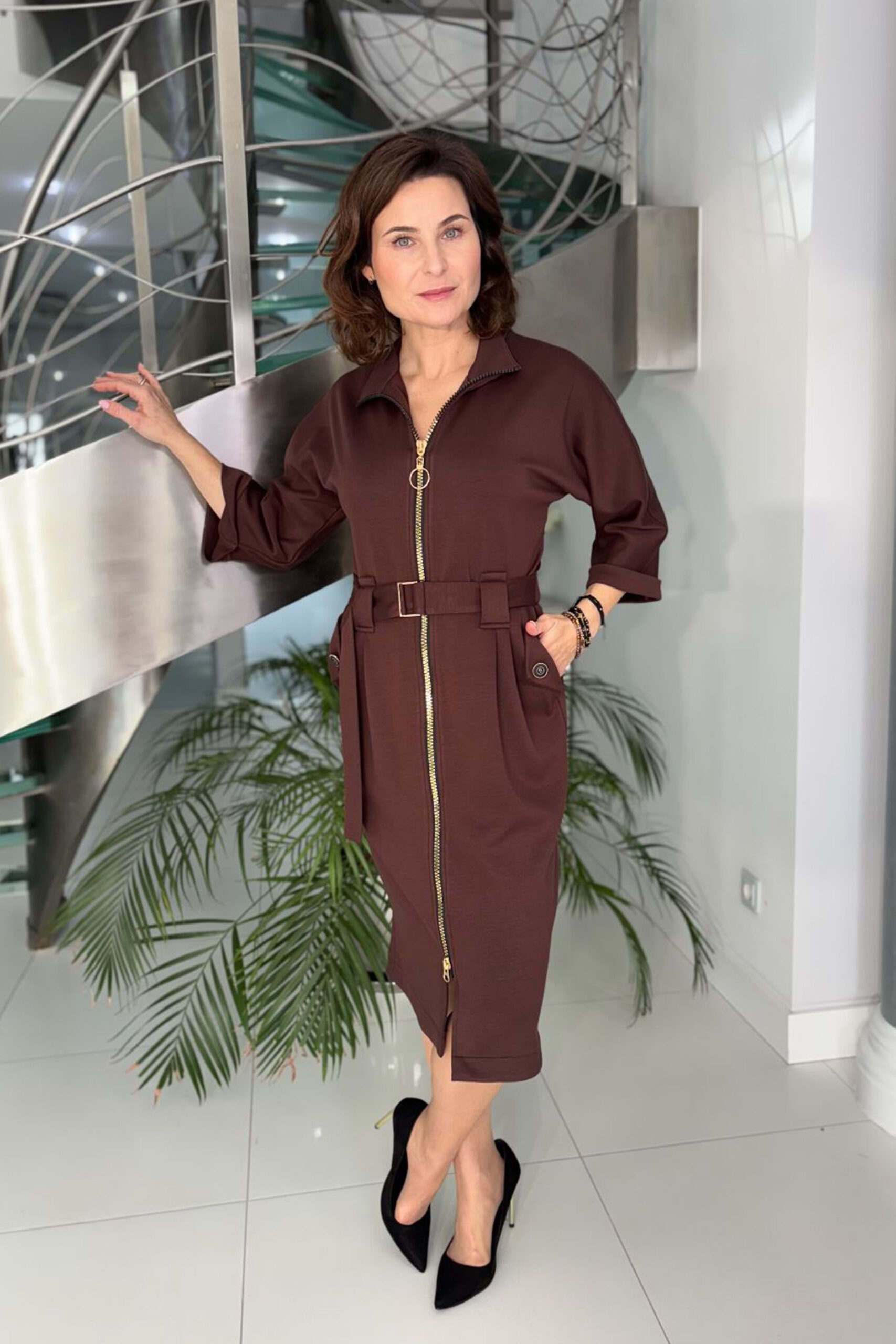 Stylowa sukienka rozpinana na całej długości z paskiem w talii to doskonałe połączenie wygody i elegancji. Klasyczny krój z nowoczesnymi detalami sprawia, że świetnie sprawdzi się zarówno w codziennych, jak i bardziej formalnych stylizacjach.